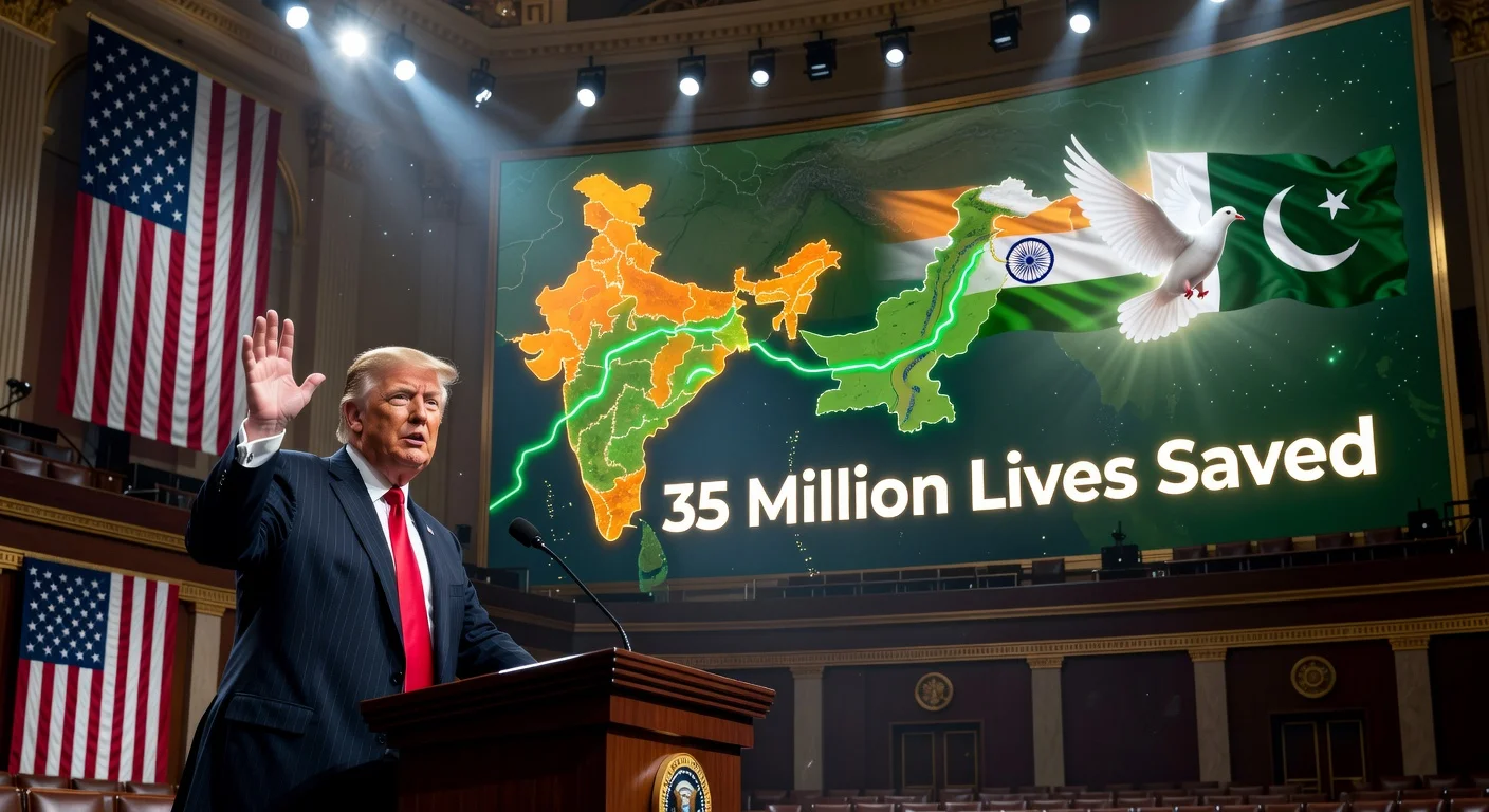 U.S. President Donald Trump reiterated in his State of the Union address on February 24, 2026, in Washington that he ended eight wars in his first 10 months, including the India-Pakistan conflict. He stated, "Pakistan and India would have had a nuclear war. 35 million people said the Prime Minister of Pakistan would have died if it were not for my involvement." The claim refers to the conflict following the Pahalgam terror attack in 2025, which killed 26 civilians.