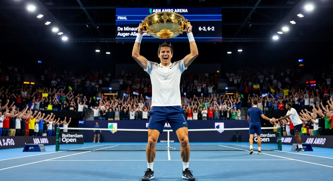 Alex de Minaur defeated Felix Auger-Aliassime 6-3, 6-2 in the final of the Rotterdam Open on February 15, 2026, securing his 11th ATP title and first indoor victory. The Australian triumphed on his third consecutive appearance in the final, having lost to Jannik Sinner in 2024 and Carlos Alcaraz in 2025. De Minaur did not face a single break point during the 78-minute match.