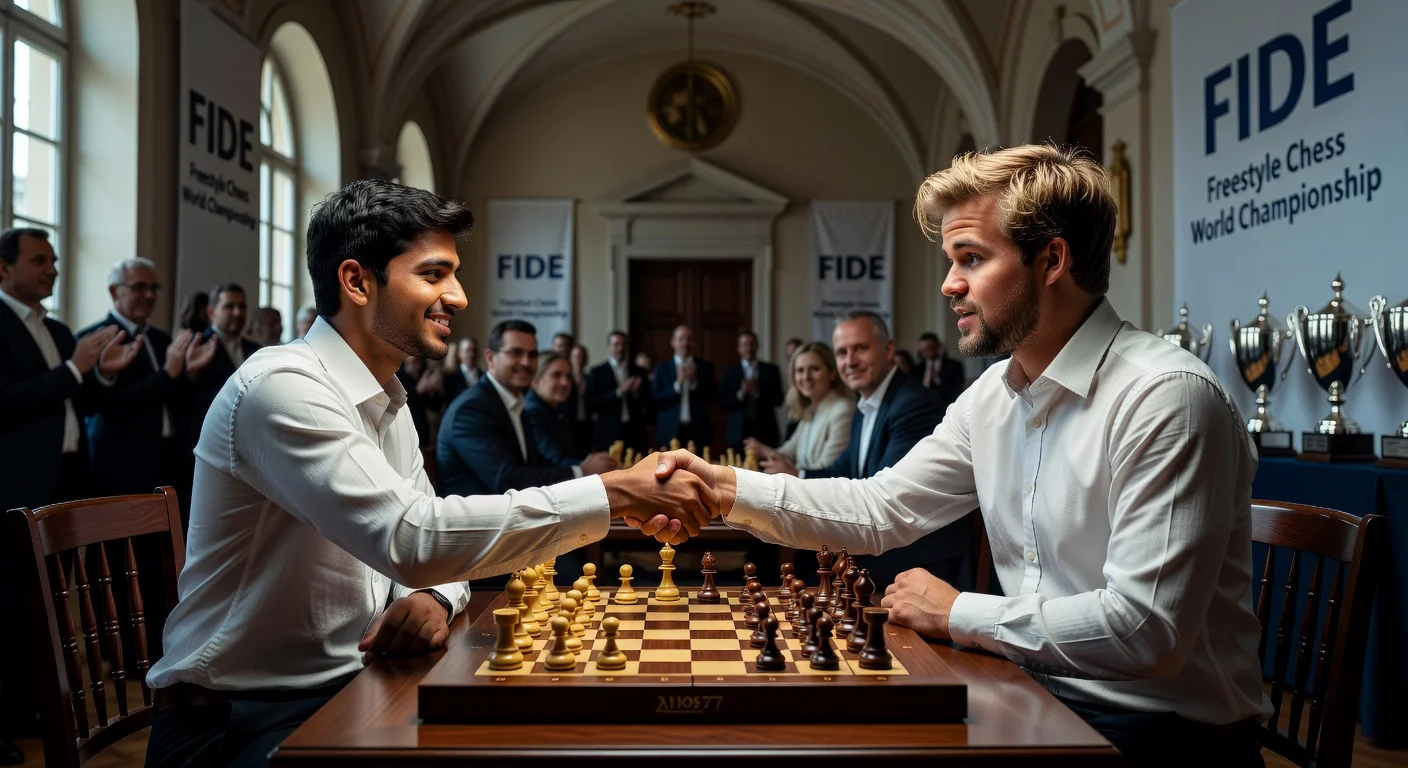 Magnus Carlsen defeated Fabiano Caruana 2.5-1.5 in the final of the 2026 FIDE Freestyle Chess World Championship to secure his 21st career world title. The Norwegian grandmaster staged a dramatic comeback in game three from a seemingly lost position, clinching the victory with a draw in the fourth game. The event, held in Weissenhaus, Germany, marked the first official FIDE-recognized championship in the freestyle format.