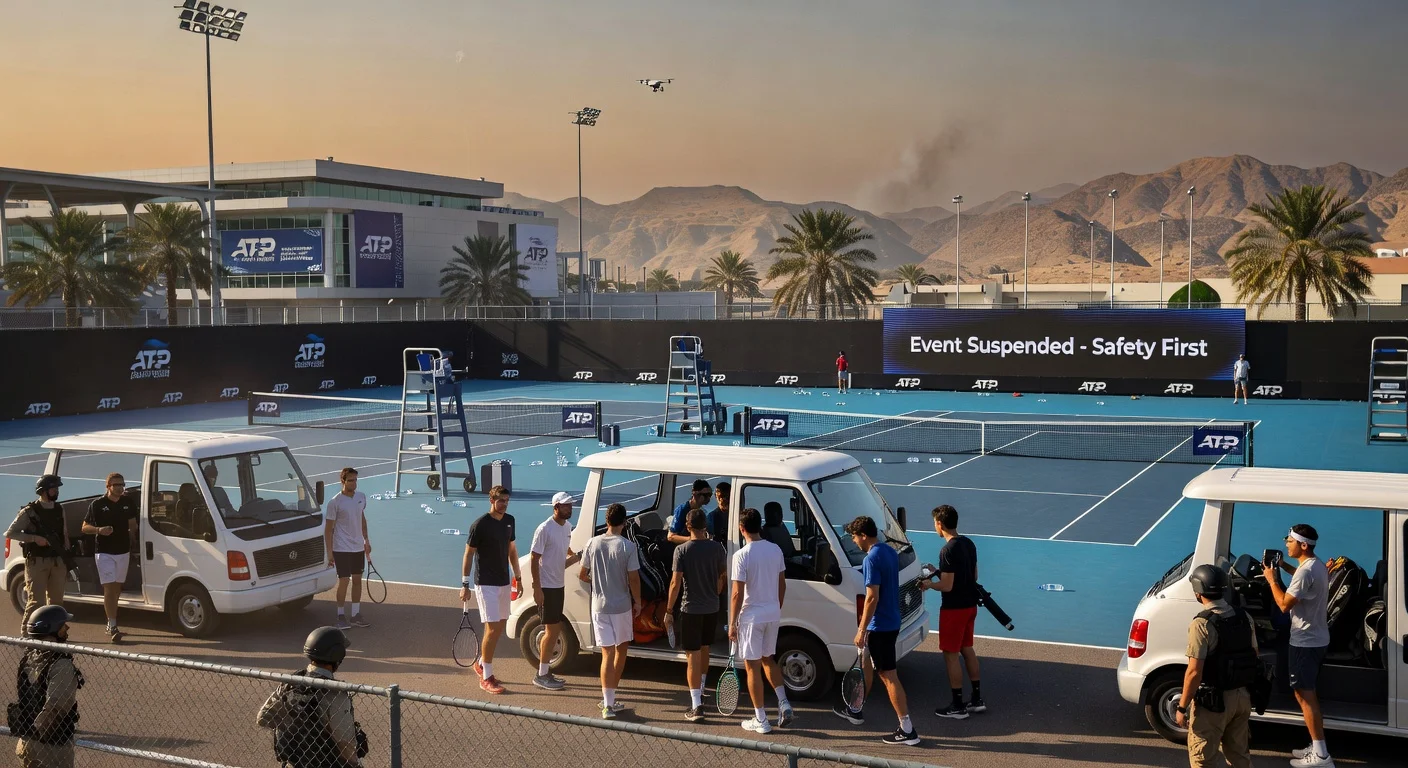 The ATP Fujairah Challenger in the United Arab Emirates was suspended and cancelled on March 3, 2026, due to a security alert from a nearby drone interception, exacerbating disruptions from the ongoing Israel-Iran conflict that has already stranded players in Dubai after their tournament. The ATP prioritised safety, evacuating players and officials while arranging support amid regional tensions.