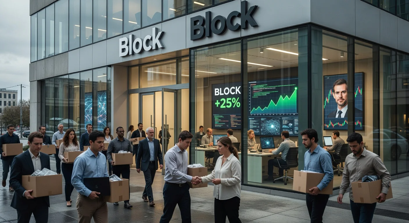 Block lays off nearly half its workforce, citing AI efficiencies; shares surge 20-25%