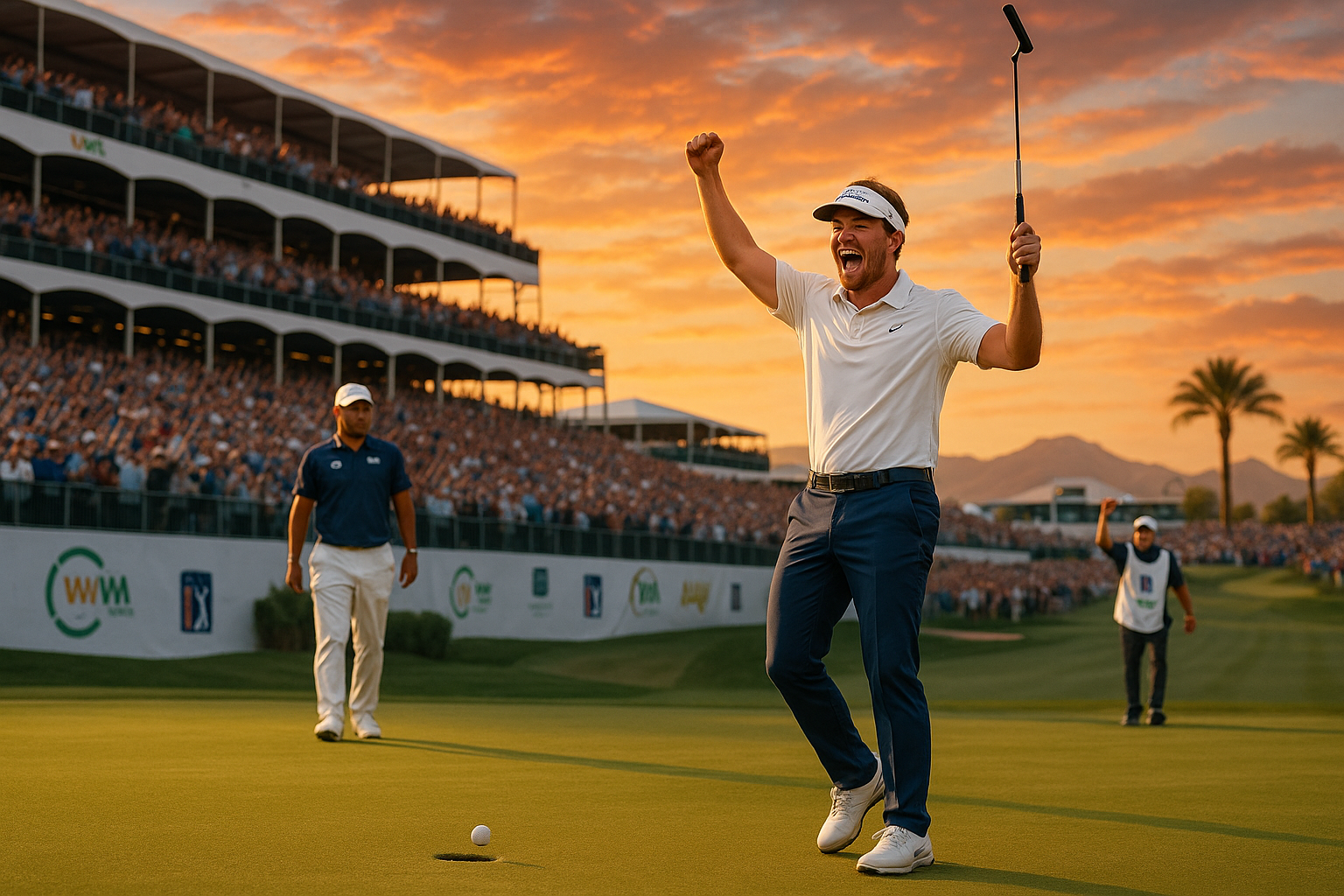 The 2026 WM Phoenix Open delivered its signature excitement on Super Bowl Sunday at TPC Scottsdale's Stadium Course. Hideki Matsuyama entered the final round with a one-shot lead at 13-under, but his driver betrayed him, missing every fairway on the front nine despite a bogey-free 33. He turned in 2-under, maintaining a slim advantage over Si Woo Kim and Michael Thorbjornsen.