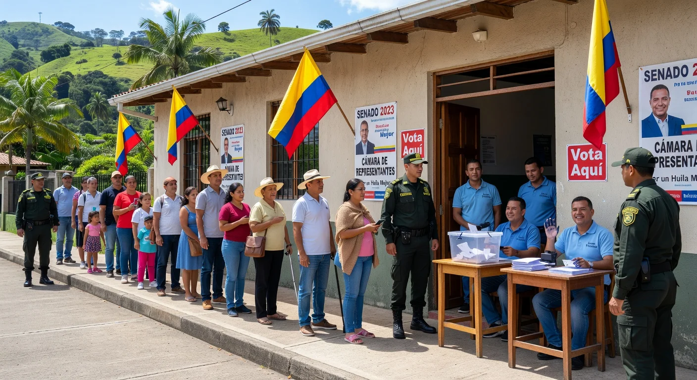 Following preparations for Colombia's March 8-9, 2026, legislative elections, voting for the Senate, House of Representatives, and interparty consultations proceeded smoothly in Huila with no security incidents, per the National Police. Polls opened in Neiva amid robust security, and initial results show several prominent candidates falling short of seats.