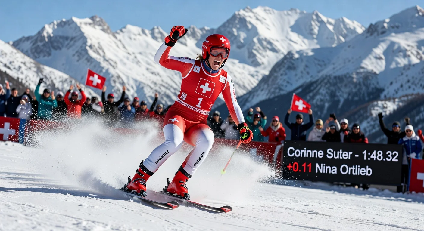 Switzerland's Corinne Suter claimed victory in the women's World Cup downhill in Soldeu, Andorra, on February 27, 2026, marking the first race since the Milano Cortina Olympics. The 31-year-old skier beat Austria's Nina Ortlieb by 0.11 seconds, with Italy's Sofia Goggia finishing third. The win narrows the gap in the standings as Lindsey Vonn sits out the remainder of the season due to injury.