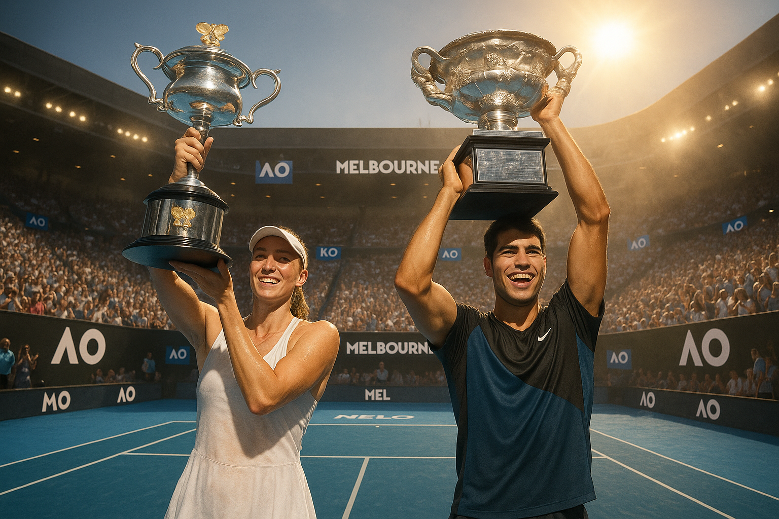 Elena Rybakina defeated top-seeded Aryna Sabalenka 6-4, 4-6, 6-4 to win her first Australian Open women's singles title, while Carlos Alcaraz overcame Novak Djokovic 2-6, 6-2, 6-3, 7-5 for his maiden men's singles crown. The 2026 tournament in Melbourne featured intense heat exceeding 104 degrees Fahrenheit and all top six seeds reaching the quarterfinals in both draws for the first time in the Open Era. Alcaraz, at 22, became the youngest man to complete a career Grand Slam.