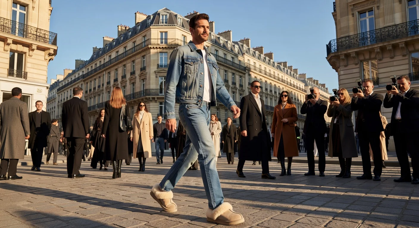 X discussions highlight François Arnaud's Ugg Otzo Clogs as practical and comfortable for travel to Paris Fashion Week, paired with a denim outfit. Fans praised the street style look and his attractiveness, with some eager to buy the shoes. Detractors called Uggs ugly, a flaw, or a crime in France, though conceded suitability for airports.