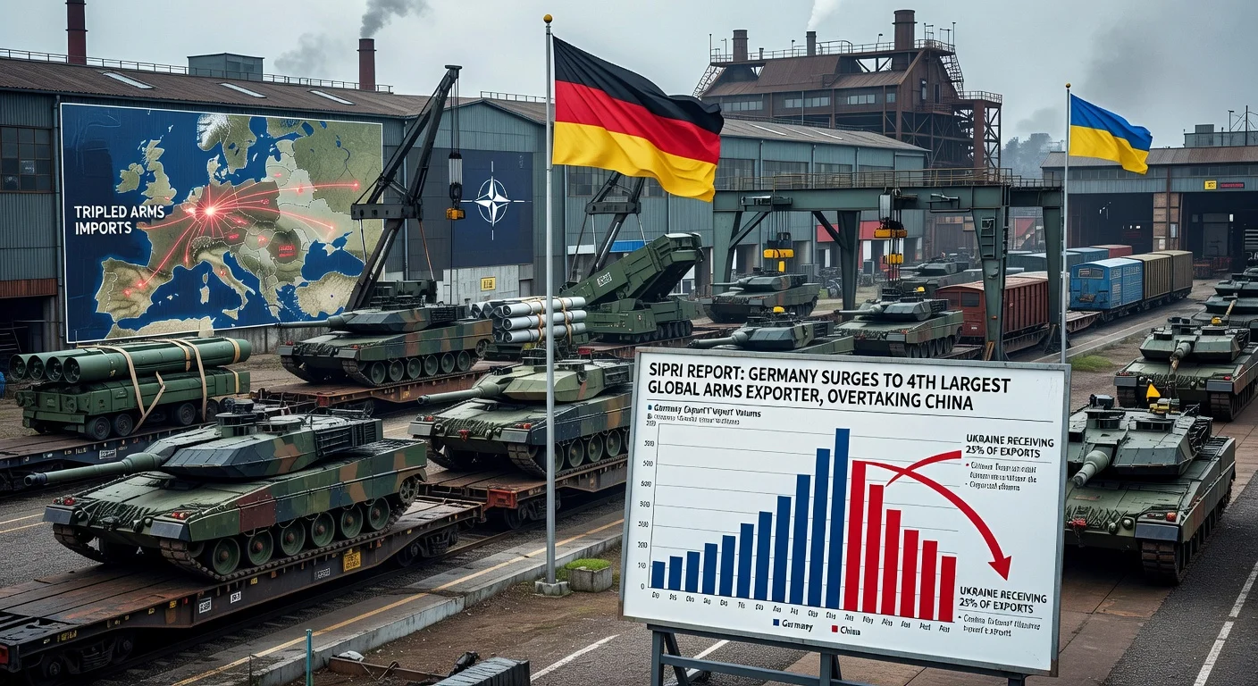 The SIPRI report on international arms transfers for the period 2021 to 2025 shows a global increase in deliveries of 9.2 percent compared to 2016 to 2020. Germany has raised its share of worldwide exports to 5.7 percent, displacing China to fifth place. About 24 percent of German arms exports went to support Ukraine, with another 17 percent to other European countries, making Europe the main recipient region at 41 percent.