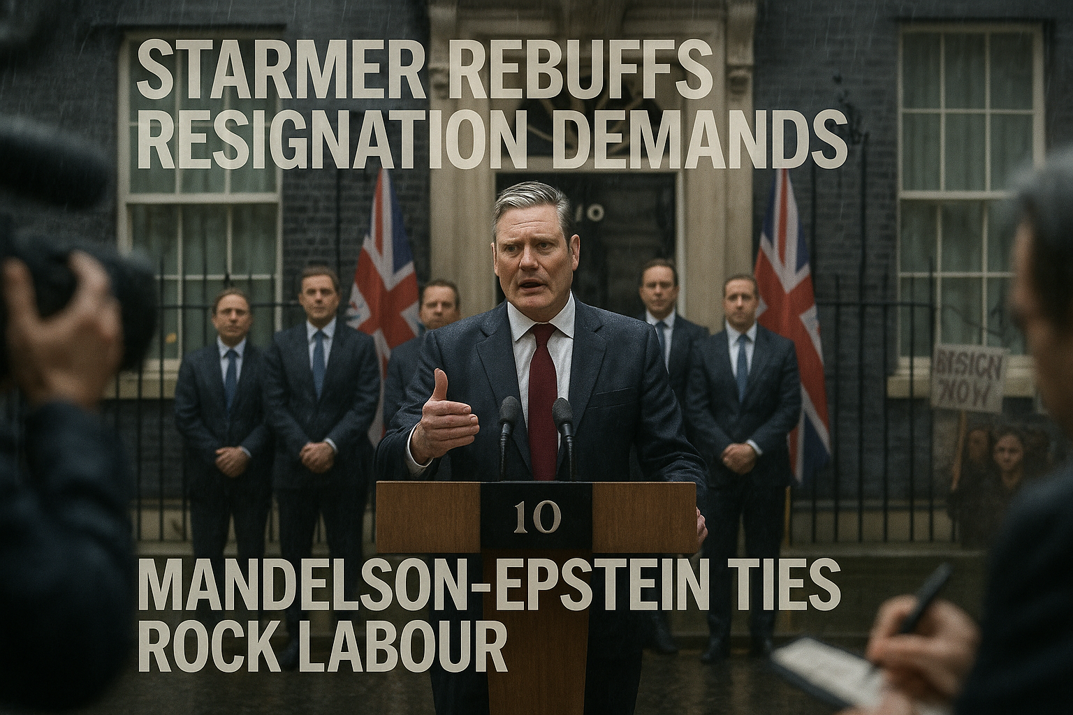 British Prime Minister Keir Starmer rebuffs calls for his resignation triggered by his controversial appointment of Peter Mandelson as US ambassador. Mandelson had close ties to the late sex offender Jeffrey Epstein. Despite resignations of close aides and criticism from within his party, Starmer receives backing from cabinet members.