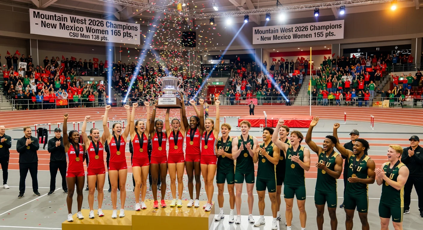 The 2026 Credit Union 1 Mountain West Men's and Women's Indoor Track and Field Championships concluded with New Mexico's women claiming victory for the second consecutive year, amassing 165 points—the highest winning total in program history—and finishing 76 points ahead of Nevada's 84. On the men's side, Colorado State captured their seventh conference title and third in a row with 138 points, edging out New Mexico's 122.
