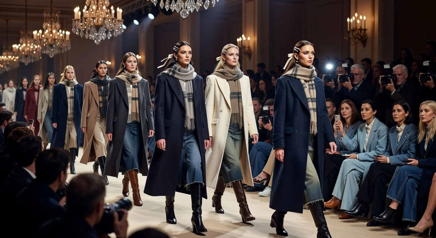 Denim trends complemented the beauty with relaxed fits. Dior showed wide, aged-washed jeans and straight styles above stilettos, some with crystals. Stella McCartney featured wide-leg jeans with dropped hems and high-waisted dark washes, adding 1980s baubles and leg zippers. Street style paired cuffed selvedge jeans with loafers and fur collars, or wide-leg trousers with stiletto heels and tartan vests. Zendaya appeared at Louis Vuitton with a soft strawberry milk pink manicure, blending sheer blush hues for an elegant neutral look.