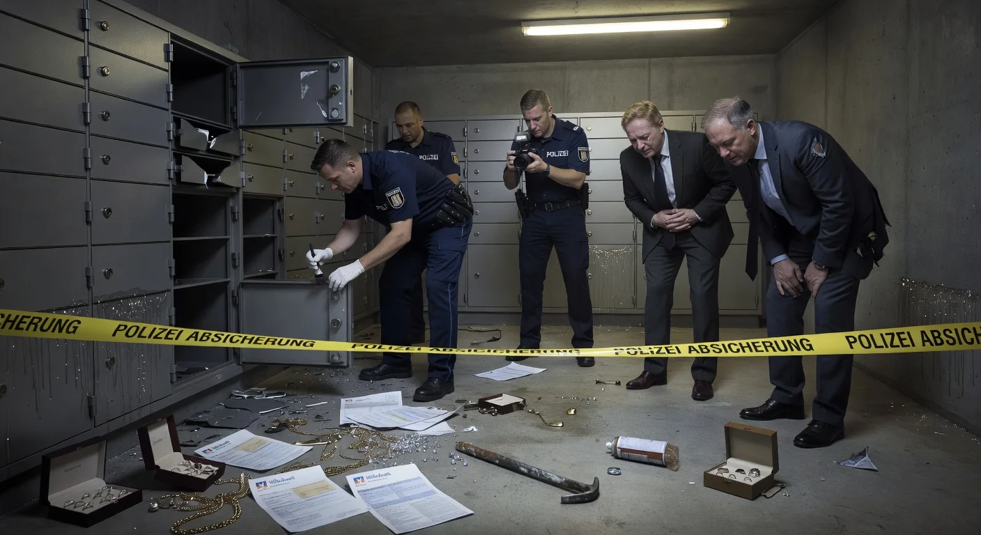 Videos from an adjacent parking garage show masked perpetrators and suspicious vehicles in the massive break-in at the Sparkasse branch in Gelsenkirchen-Buer, where thieves looted nearly all 3,250 safe deposit boxes. Loot may exceed 30 million euros; police follow tips as shocked customers seek compensation.