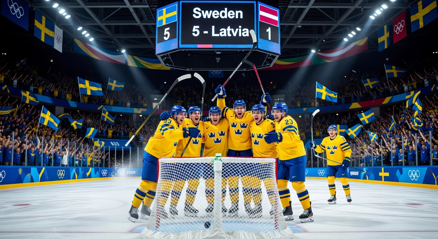 Tre Kronor lived up to their favorite status in Milano's Santagiulia Arena by defeating Latvia 5–1 in an extra match stemming from Slovakia's late goal in the group stage. The game started strongly for Sweden, who took the lead with two goals within 41 seconds in the first period. Adrian Kempe deflected in 1–0 on a pass from Joel Eriksson Ek, followed by Gabriel Landeskog's 2–0 from close range behind Latvia's NHL goaltender Elvis Merzlikins.