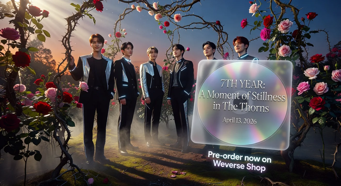 TOMORROW X TOGETHER, known as TXT, will release their eighth mini-album, 7TH YEAR: A Moment of Stillness in the Thorns, on April 13, 2026, marking their seventh anniversary with BIGHIT MUSIC. The album follows the group's contract renewal in 2025 and comes after a successful Billboard charting release and global tour. Pre-orders begin March 3 on platforms including Weverse Shop.