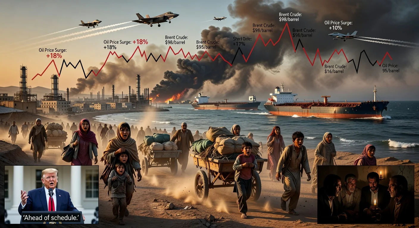 The US-led military operation against Iran, launched on February 28, has entered its second week, prompting fluctuations in global oil prices and the exodus of thousands of Afghans and Pakistanis from the country. President Donald Trump described the conflict as ahead of schedule and largely complete, while Iranian officials issued mixed signals amid leadership fragmentation. Democrats and media outlets have labeled it a potential 'forever war,' calling for congressional approval.