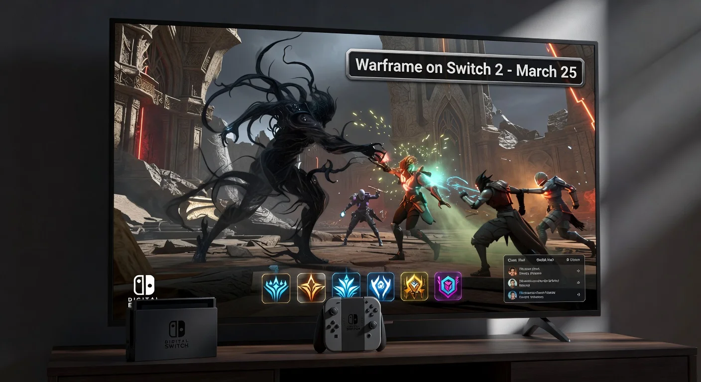Digital Extremes will release Warframe on Nintendo Switch 2 on March 25, featuring graphical enhancements like 1080p at 60 FPS, faster load times, improved textures, and better shaders. The launch coincides with the free Shadowgrapher update across all platforms, introducing the 64th Warframe Follie, a 4v1 asymmetric Hunt mode, clan social features, and exclusive login rewards for Switch 2 players.