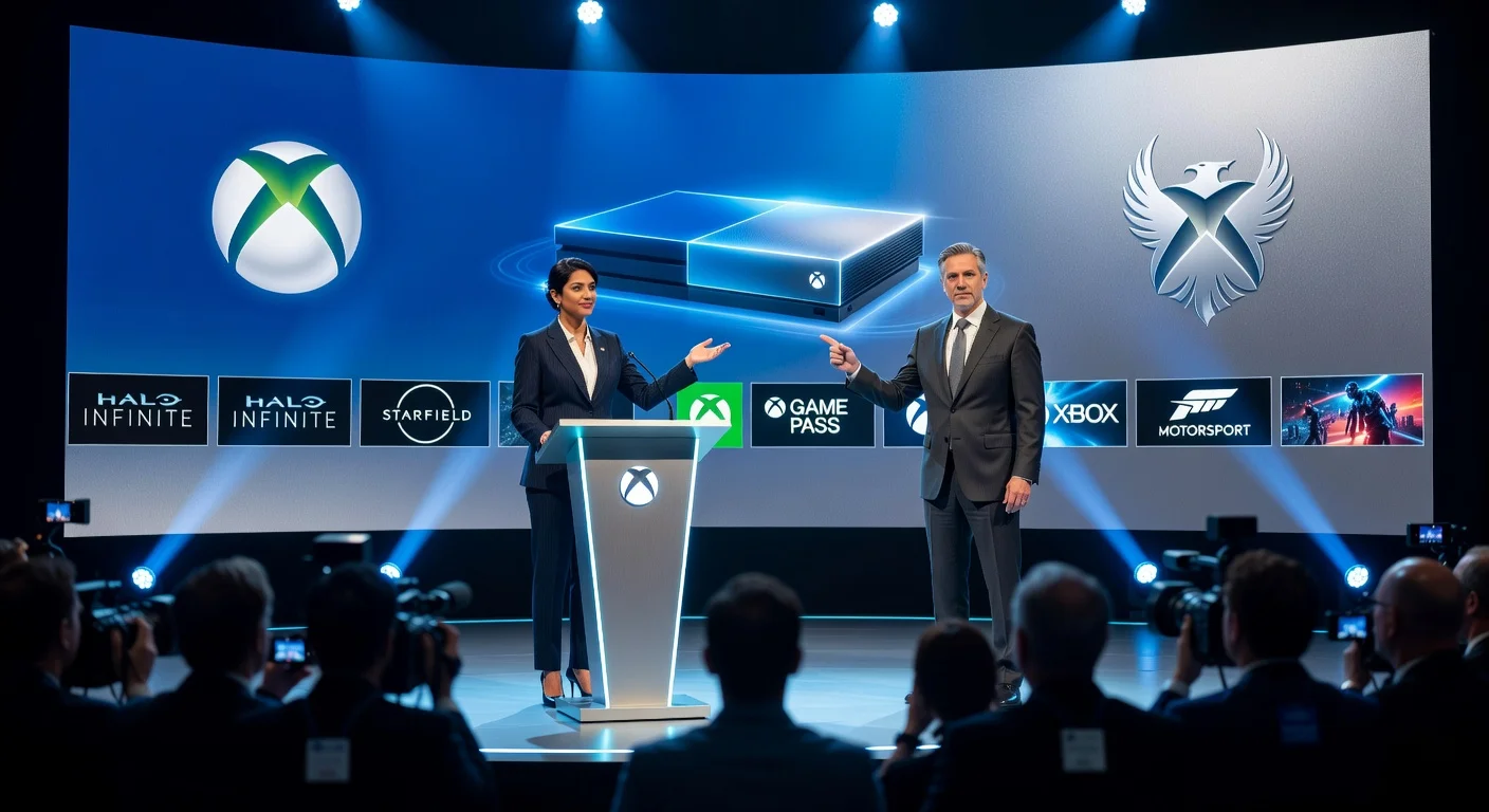 New Xbox leaders Asha Sharma and Matt Booty at press conference pledging hardware focus and brand revival.