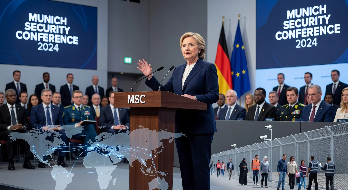 Hillary Clinton speaks at Munich Security Conference on migration, borders, and humane enforcement.