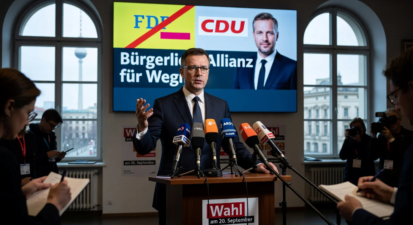 Sebastian Czaja at a Berlin press conference, announcing his exit from the FDP to back CDU's Kai Wegner ahead of the September election.