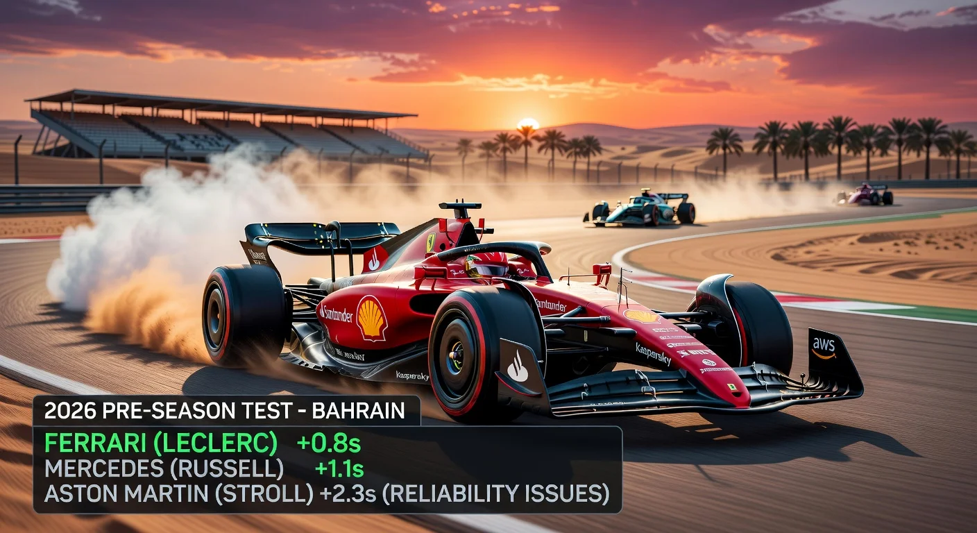 Charles Leclerc set the fastest time during six days of pre-season testing in Bahrain, highlighting Ferrari and Mercedes as frontrunners ahead of the 2026 Formula 1 season opener in Australia. The tests revealed a tight battle among the top four teams, while Aston Martin struggled with reliability issues. Midfield teams like Haas and Alpine showed promise in the new regulations era.