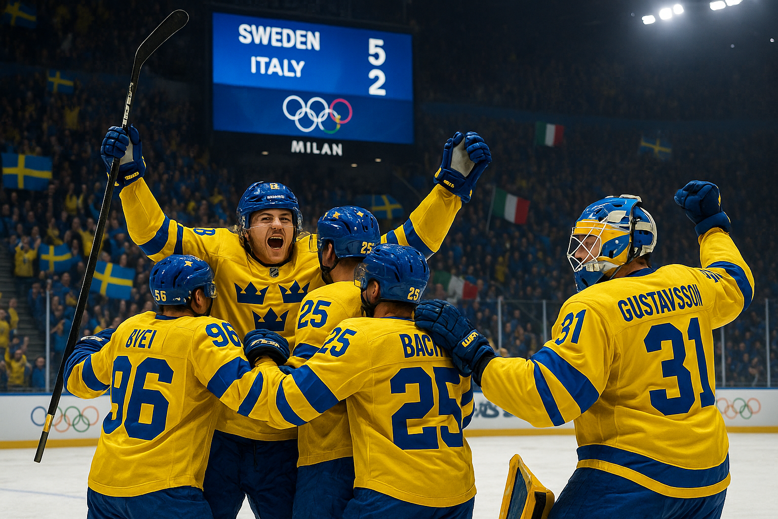 Sweden secured a 5-2 victory over host nation Italy in their Group B opener at the 2026 Winter Olympics in Milan. Despite an early lead by Italy and some defensive lapses, Sweden dominated with 60 shots on goal, setting an Olympic record. William Nylander's tie-breaking goal proved pivotal in the win.