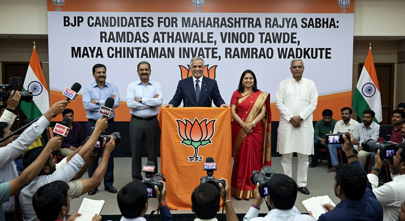 The Bharatiya Janata Party has announced four candidates for the biennial Rajya Sabha elections in Maharashtra. The nominees include Ramdas Athawale, Vinod Tawde, Maya Chintaman Invate, and Ramrao Wadkute. Nominations must be filed by March 5, with voting and counting scheduled for March 16.