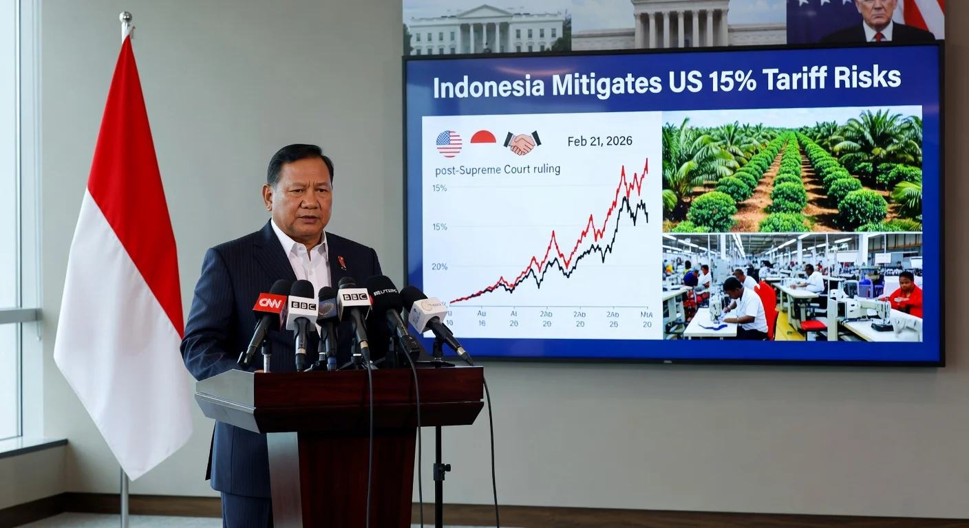 Indonesian President Prabowo Subianto expressed readiness to mitigate risks from US President Donald Trump's hike of global import tariffs to 15%, announced February 21, 2026, one day after a Supreme Court ruling invalidated prior tariffs. Officials affirmed that bilateral trade negotiations continue, highlighting zero-tariff deals for key Indonesian exports.
