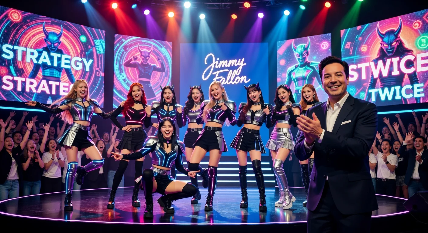 K-pop group TWICE delivered a performance of their hit song 'Strategy' on The Tonight Show Starring Jimmy Fallon on February 23, 2026. The appearance marked their third visit to the program and celebrated the track's inclusion in the Netflix animated film KPop Demon Hunters. Host Jimmy Fallon praised the group as a 'Grammy-level artist,' according to fan accounts.