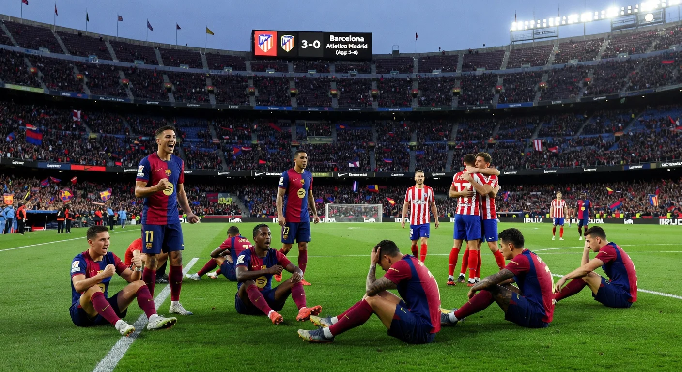 O Barcelona venceu o Atlético de Madrid por 3-0 na segunda mão das meias-finais da Taça do Rei, mas perdeu por 4-3 no agregado, terminando a defesa do título. Marc Bernal marcou dois golos, com Raphinha a converter um penálti, mas o Atlético avançou para a final. O jogo destacou a resiliência do Barcelona apesar das lesões acumuladas.