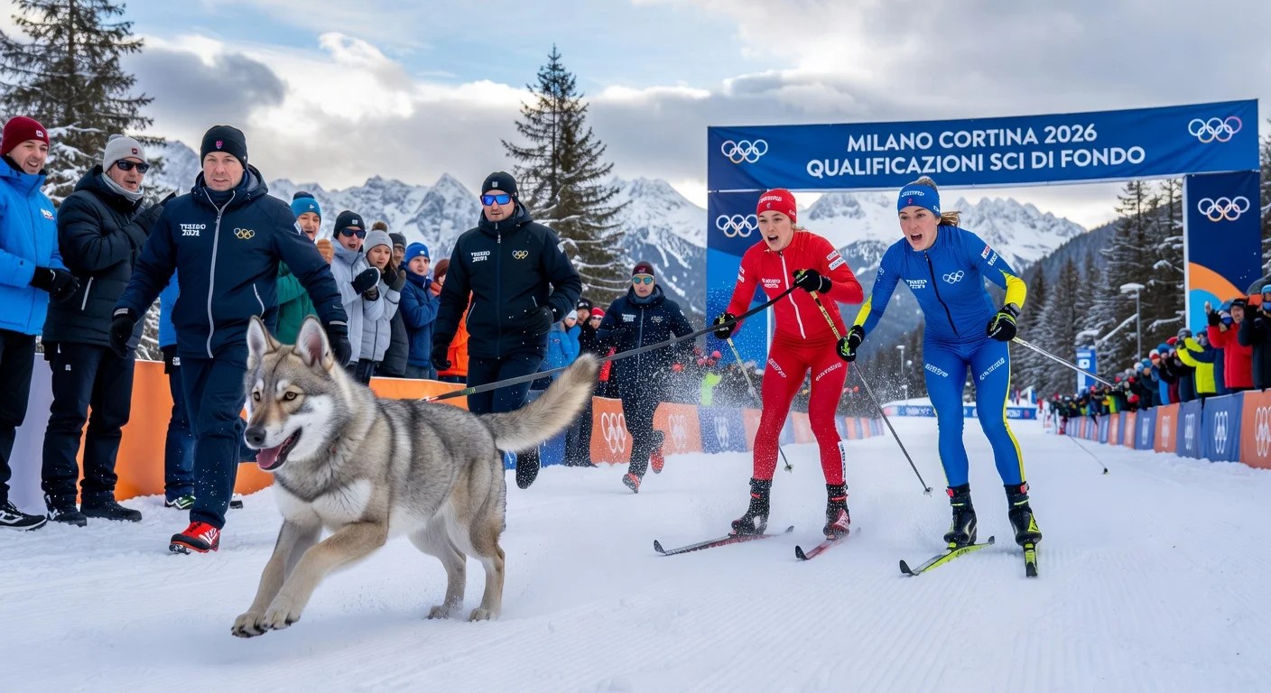On February 18, 2026, during the qualification round for the women's cross-country skiing team sprint free event at the Lago di Tesero course in Tesero, Italy, a local dog made an unexpected appearance. The two-year-old Czechoslovakian wolfdog, identified as Nazgul, escaped from a nearby bed-and-breakfast where his owners—related to an event official—were staying. He sprinted down the homestretch, crossing the finish line captured by the official photo-finish camera, as broadcast footage showed.