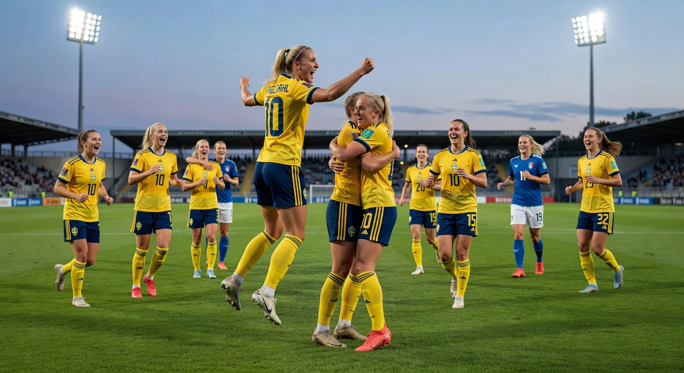Sweden's women's national football team started the World Cup qualifiers with a 1–0 away win against Italy. Debutant Bella Andersson delivered a strong performance in defense and shared an emotional moment with childhood friend Smilla Holmberg after the match. Filippa Angeldahl scored the decisive goal.