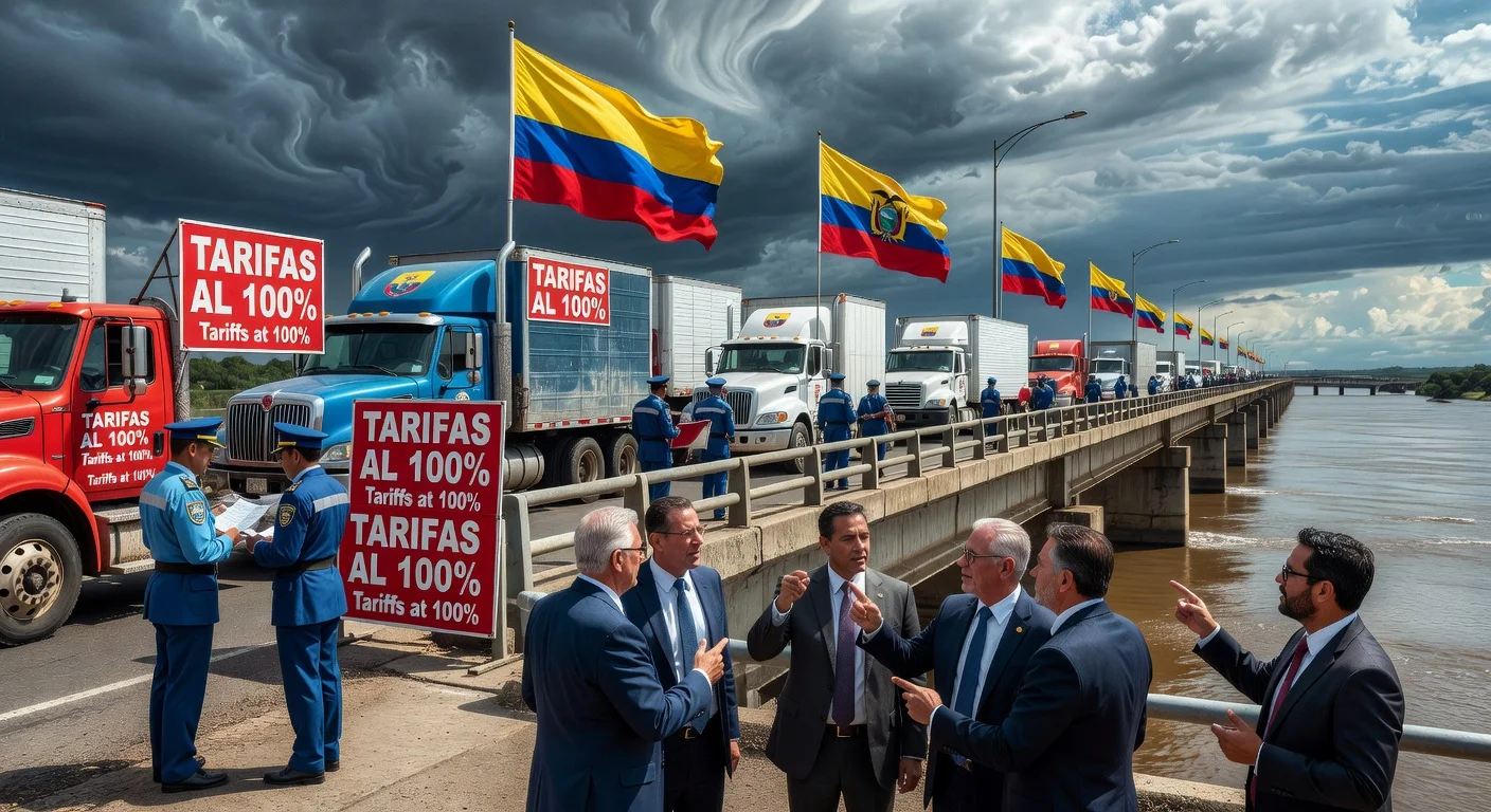 Ecuador imposed a 30% tariff on Colombian imports due to border security concerns, prompting Colombia to retaliate with similar measures, including tariffs on 23 Ecuadorian tariff items and a temporary suspension of electricity exports. This escalation impacts bilateral trade worth billions of dollars and endangers jobs in sectors like agriculture and manufacturing. Business groups urge restoring diplomatic dialogue to prevent further economic fallout.