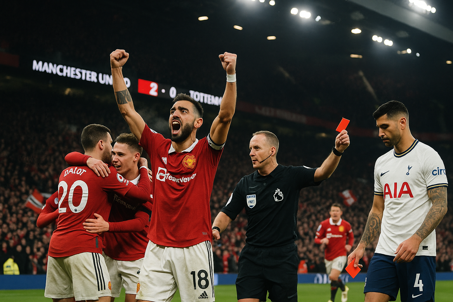 The match turned in the 29th minute when Tottenham captain Cristian Romero received a straight red card for a late challenge on Casemiro, catching him high on the leg. This was Romero's second dismissal of the season, earning him a four-game ban that will see him miss matches against Newcastle, Arsenal, Crystal Palace, and Fulham. Spurs reshuffled defensively, substituting Wilson Odobert for Radu Dragusin, but United capitalized on their numerical advantage.