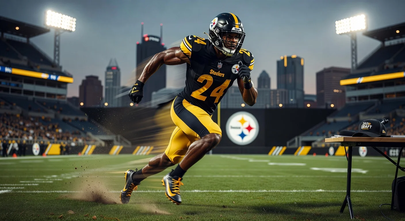 Pittsburgh Steelers select speedy Oklahoma safety Robert Spears-Jennings at No. 224 in 2026 NFL Draft, shown sprinting in team uniform.