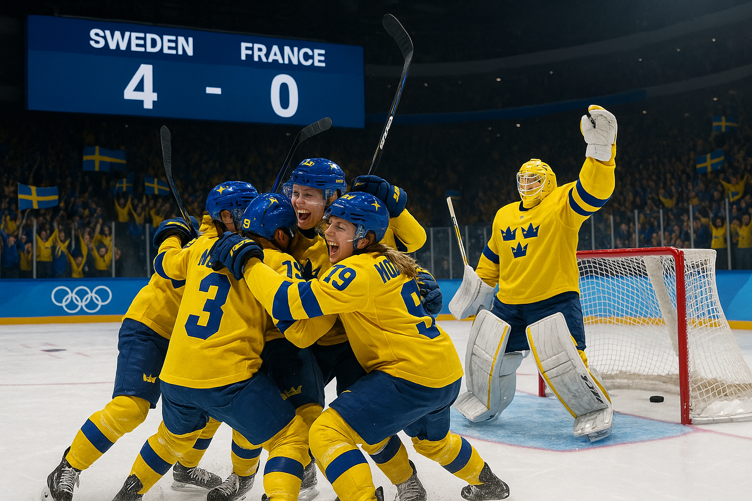 Sweden's women's hockey team advanced to the Olympic quarterfinals after a dominant 4-0 victory over France, marking their third straight win in the group stage. The match featured a strong start and key contributions from forwards, though it was marred by an early injury to defender Jenna Raunio. Goaltender Emma Söderberg delivered a solid performance in net.