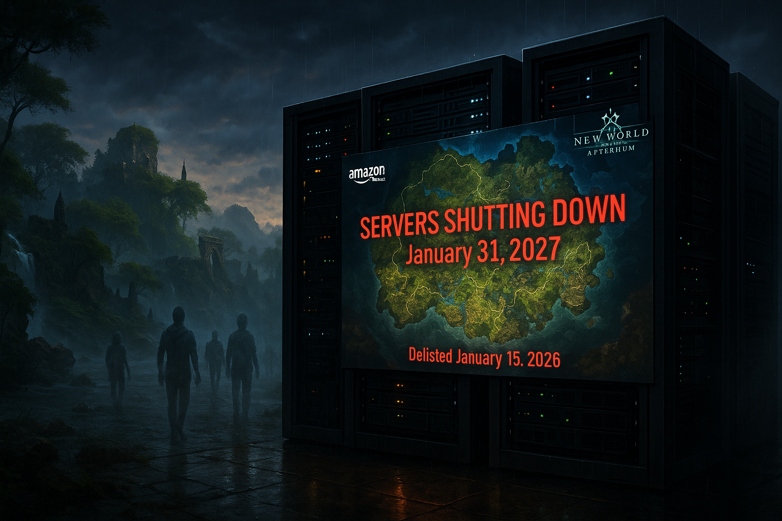 Amazon Games has announced that its MMO New World: Aeternum will go offline on January 31, 2027, following a delisting from digital stores on January 15, 2026. The decision comes after the game received no new content beyond the 2025 Nighthaven seasonal update, amid ongoing challenges for Amazon's gaming division. Players who own the game can continue accessing it until the servers shut down.