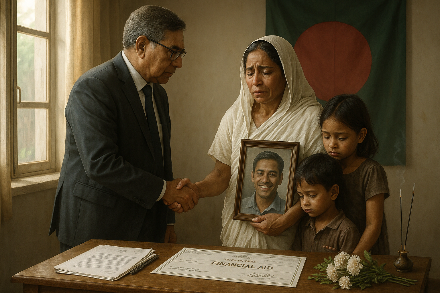 Bangladesh government adviser consoles grieving family of lynched Hindu worker Dipu Das, pledging financial support.