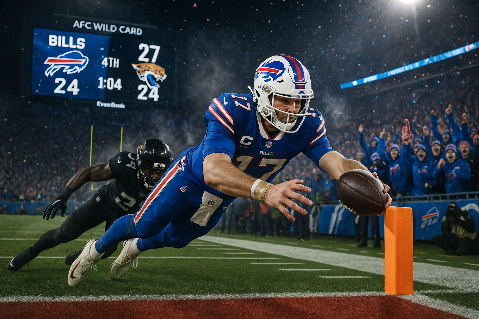 Josh Allen scores the game-winning touchdown as Buffalo Bills defeat Jacksonville Jaguars 27-24 in AFC wild card thriller.