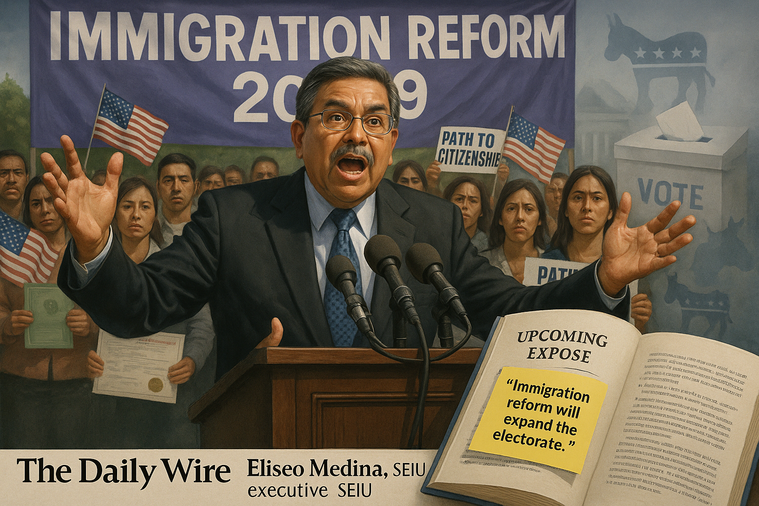 An excerpt published by The Daily Wire from an upcoming book by author Peter Schweizer recounts remarks attributed to SEIU leader Eliseo Medina in July 2009 arguing that immigration reform could eventually expand the electorate through naturalization, a claim the excerpt ties to broader Democratic political strategy.