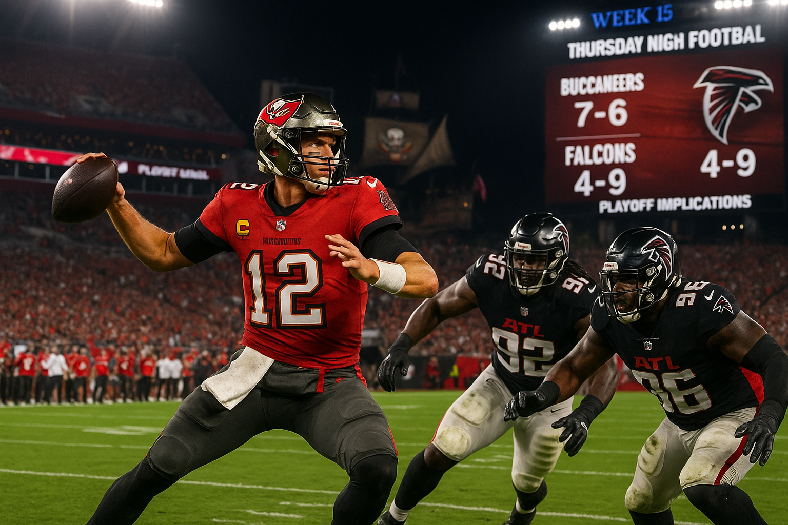 The Tampa Bay Buccaneers host the Atlanta Falcons on Thursday Night Football in Week 15, a matchup with significant playoff implications for the NFC South leaders. Both teams have struggled recently, with Tampa Bay holding a 7-6 record tied atop the division and Atlanta at 4-9 after seven losses in their last eight games. Key returns from injury could boost the Buccaneers' offense against a Falcons defense strong in sacks and pass defense.