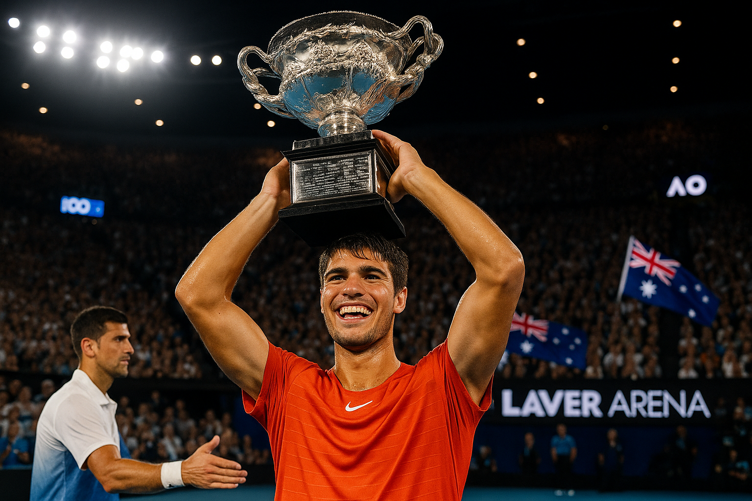 Carlos Alcaraz won his first Australian Open title by beating Novak Djokovic 2-6, 6-2, 6-3, 7-5 in the 2026 final, becoming the youngest man to achieve a career Grand Slam at age 22. The victory marked Djokovic's first loss in an Australian Open final, denying him a record 25th major. Alcaraz's triumph solidifies his position as world No. 1 with a commanding lead in the rankings.
