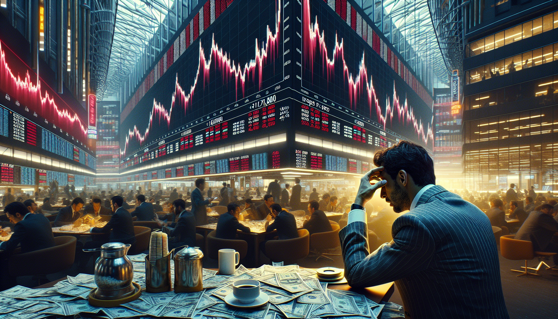 Photo illustrating the cryptocurrency market crash, showing falling prices on trading screens and a worried trader amid financial turmoil.