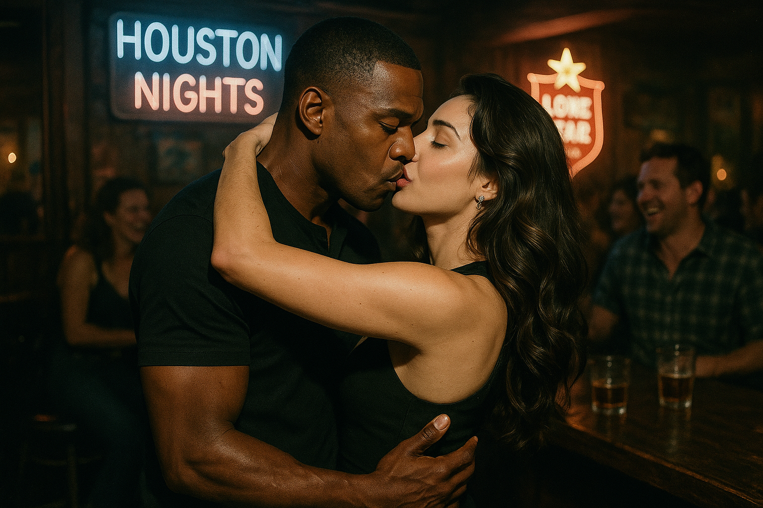 Paparazzi photo of Desmond Scott kissing a mystery woman at a Houston bar amid his divorce scandal.