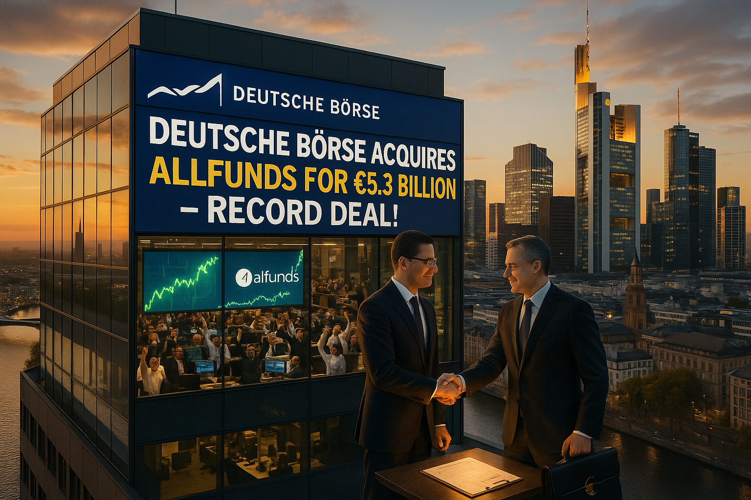 Deutsche Börse har indsendt et tilbud på 5,3 milliarder euro om fondplatformen Allfunds. Det inkluderer 8,80 euro pr. aktie, hvoraf 6 euro i kontanter og resten i aktier og udbytte. Overtagelsen ville være den største i virksomhedens historie og kræver godkendelse fra tilsynsmyndigheder.