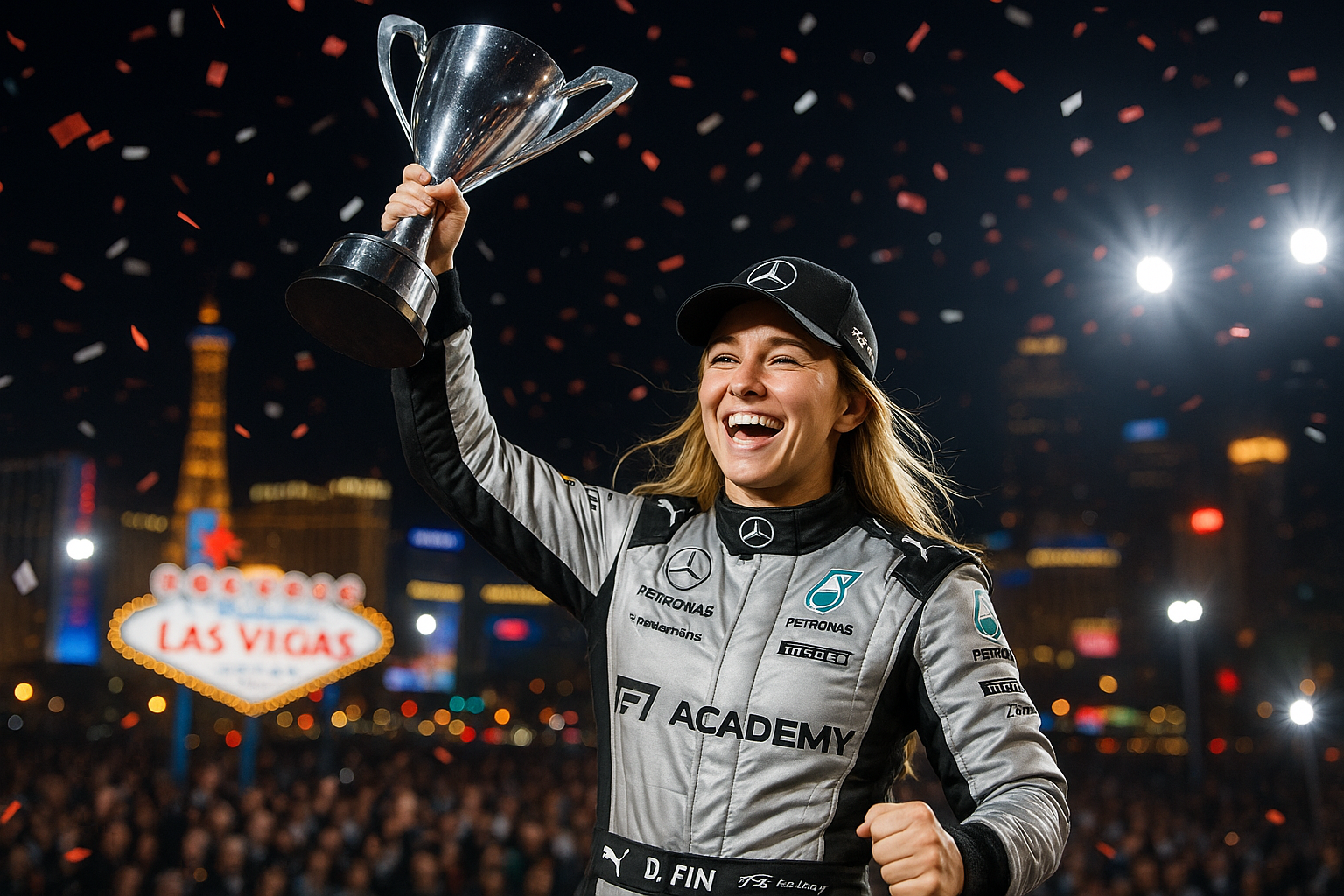 Doriane Pin triumphs on the F1 Academy podium in Las Vegas after clinching the 2025 title, advancing to Mercedes development driver role.