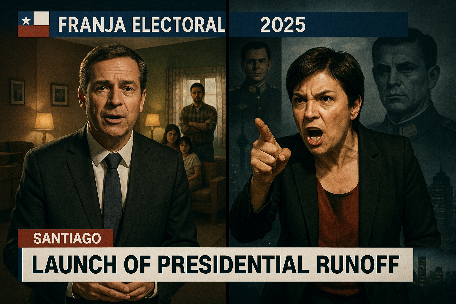 On Sunday, 15 days before the 2025 presidential runoff, José Antonio Kast and Jeannette Jara launched their electoral propaganda segments with contrasting messages. Kast aimed to humanize his image by discussing his humble upbringing, while Jara directly confronted her rival by recalling his defense of Miguel Krassnoff. The broadcasts signal the start of the campaign's final stretch in Chile.