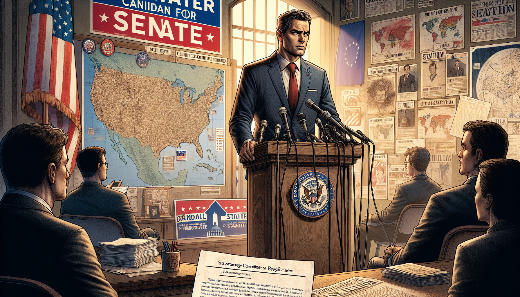 Graham Platner at a press conference in his Maine Senate campaign office, amid controversies and staff changes, looking concerned while speaking to the media.