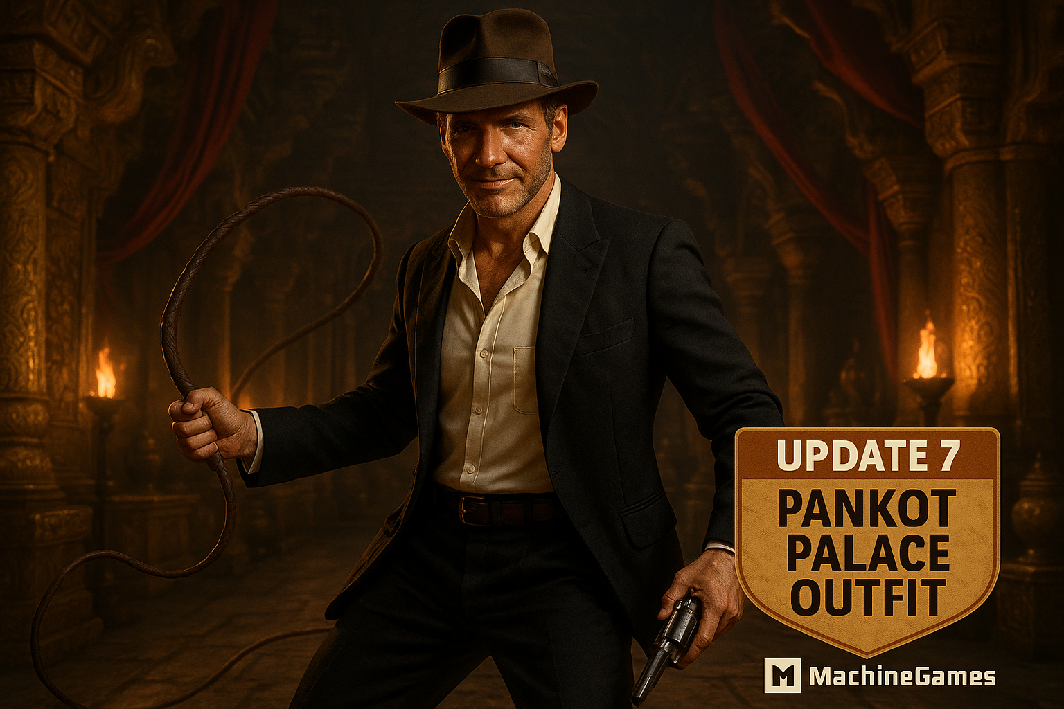 MachineGames has released Update 7 for Indiana Jones and the Great Circle, introducing a new Pankot Palace outfit inspired by the Temple of Doom film. The update also includes several bug fixes to improve audio, documentation, and gameplay stability. An additional outfit is promised in a future patch.