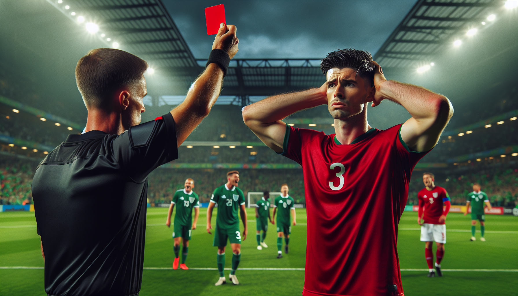 Portugal manager Roberto Martinez defended Ronaldo post-match, stating, “There’s no violence – he tries to push them away. He was unlucky. The angle of the images makes it worse than what actually happened. It’s his first red card for the national team. It’s incredible.” Martinez called it “a game to forget,” adding, “We have to accept that Ireland deserved to win.” Former Ireland midfielder Ronnie Whelan commented, “Ronaldo put an elbow right into the back of O’Shea. That had to be a red card.”