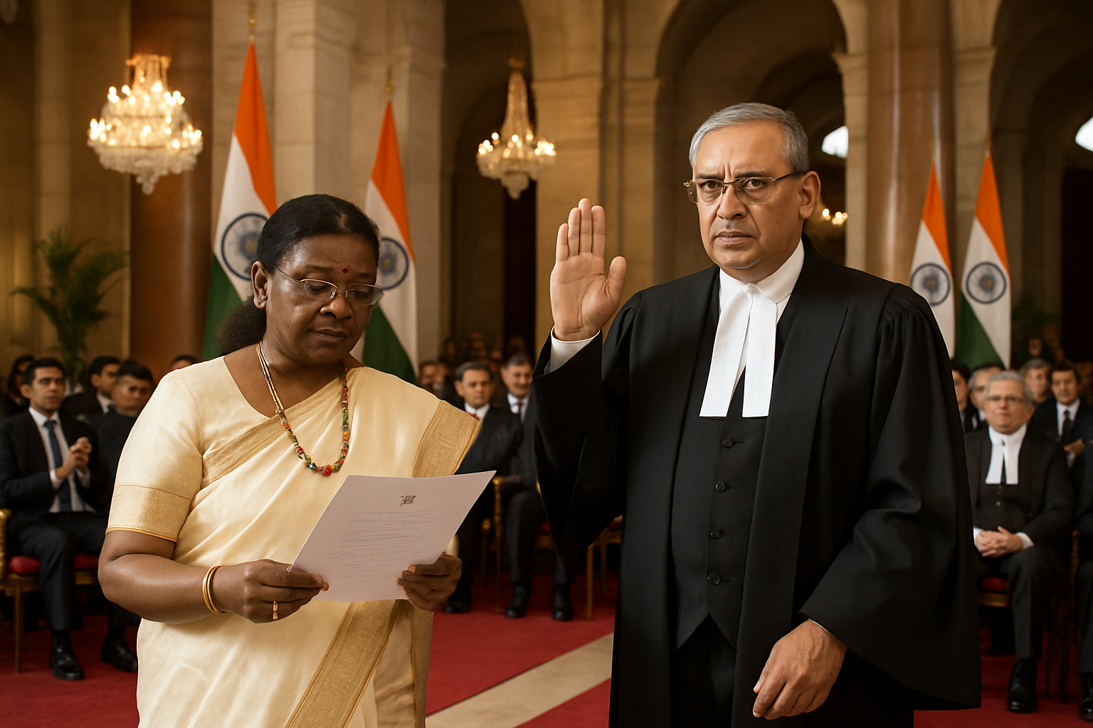 President Droupadi Murmu administers oath to Justice Surya Kant as India's 53rd Chief Justice at Rashtrapati Bhavan.