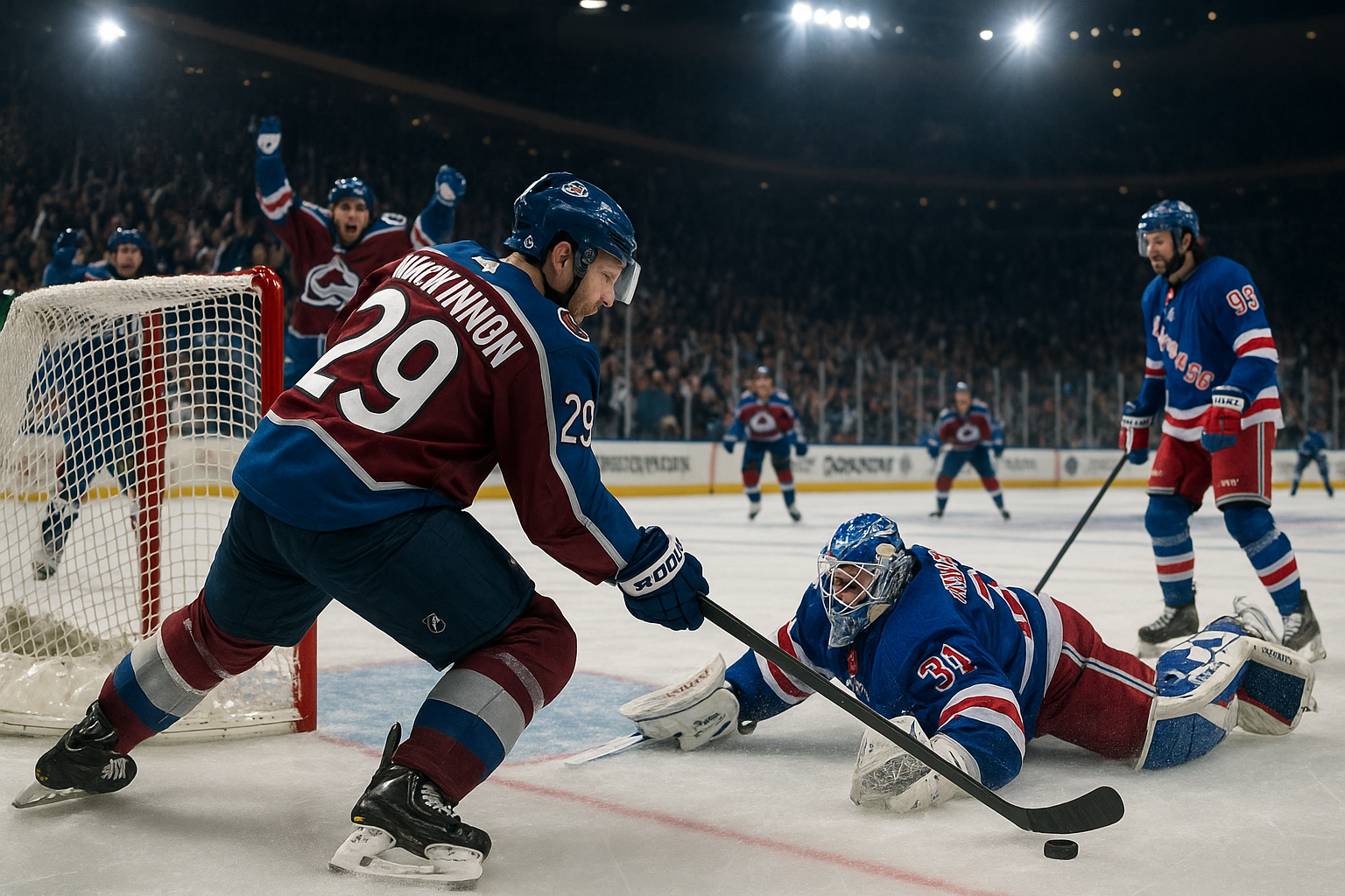 The Colorado Avalanche improved to 20-2-6 with a hard-fought 3-2 overtime win against the New York Rangers, becoming the first NHL team to reach 20 victories this season. Nathan MacKinnon, who leads the league with 24 goals, opened the scoring in the third period at 15:26 with his first goal, batting in a rebound from Martin Necas' point shot to give Colorado a 2-1 lead. Artemi Panarin tied it at 2-2 with 41.8 seconds left in regulation, firing a one-timer from the left point through traffic with Shesterkin pulled for an extra attacker.